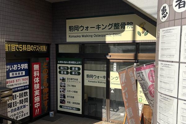 綱島からトレッサ方面へ向かい、トレッサ横浜を過ぎた環2駒岡交差点の少し手前にある整骨院。