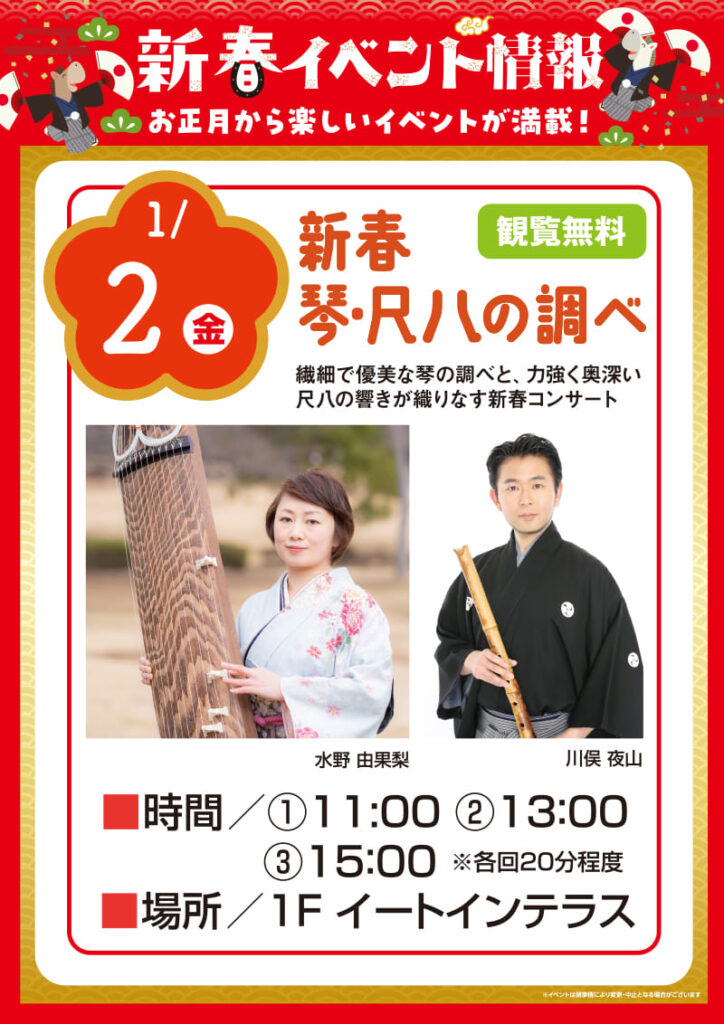 繊細で優美な琴の調べと、力強く奥深い尺八の響きが織りなす新春コンサート。