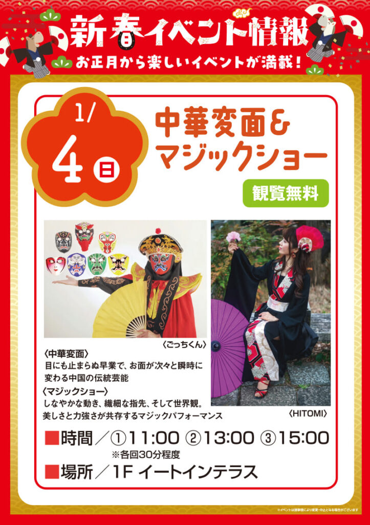 出演 ごっちくん(中華変面)、HITOMI(マジックショー)