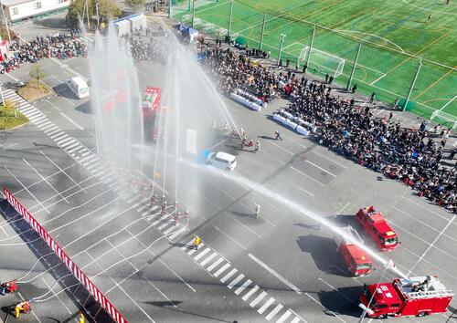 お囃子や獅子舞、鼓隊演奏や消防総合訓練、一斉放水や車両展示、キャラクターとのふれあい広場など、楽しめるコンテンツが盛りだくさん!