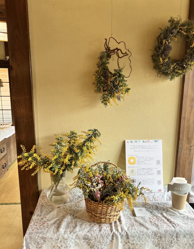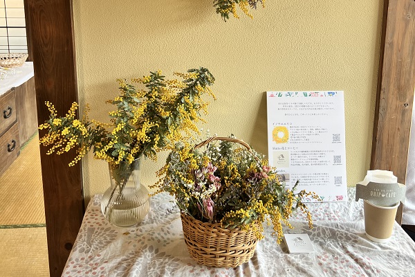 今年の「春花・ミモザ展」も、イラストレーターとして活躍されているイノウエエリコさん(Instagramアカウント)と、大倉山で植物雑貨と自家焙煎珈琲豆を販売されている「Hütte 花とコーヒー」さん(Instagramアカウント)による、ミモザをはじめとした春の植物をテーマにした展示販売会となっています。