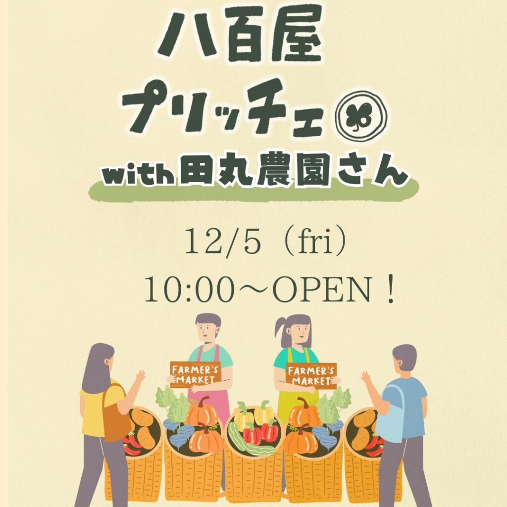 「おそうじ屋プリッチェ」の店舗で、地域の美味しいお野菜を販売される取り組みですが、12月の開催が決定しました。