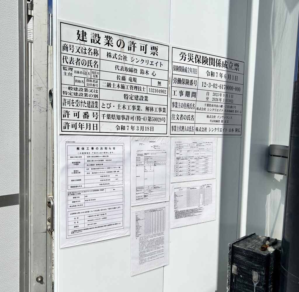 建設業の許可票と解体工事のお知らせ
