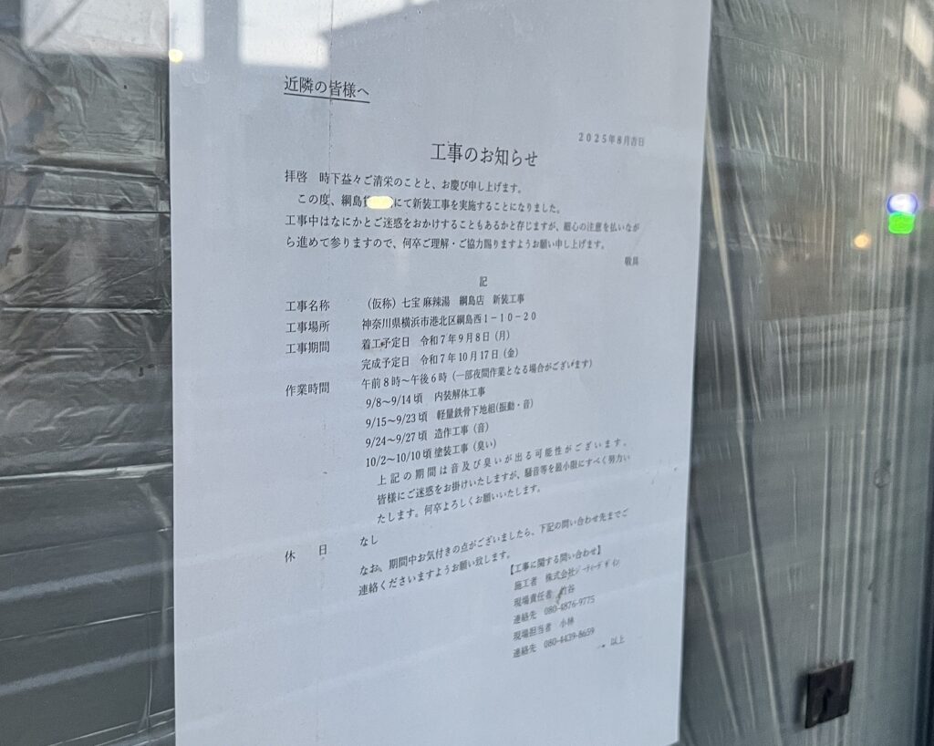 「(仮称)七宝麻辣湯 綱島店」の概要はこちらからチェック