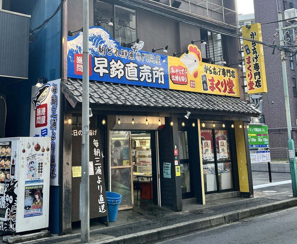 バス通り沿いにある、朝どれ鮮魚専門の漁港問屋「早鈴直売所」。