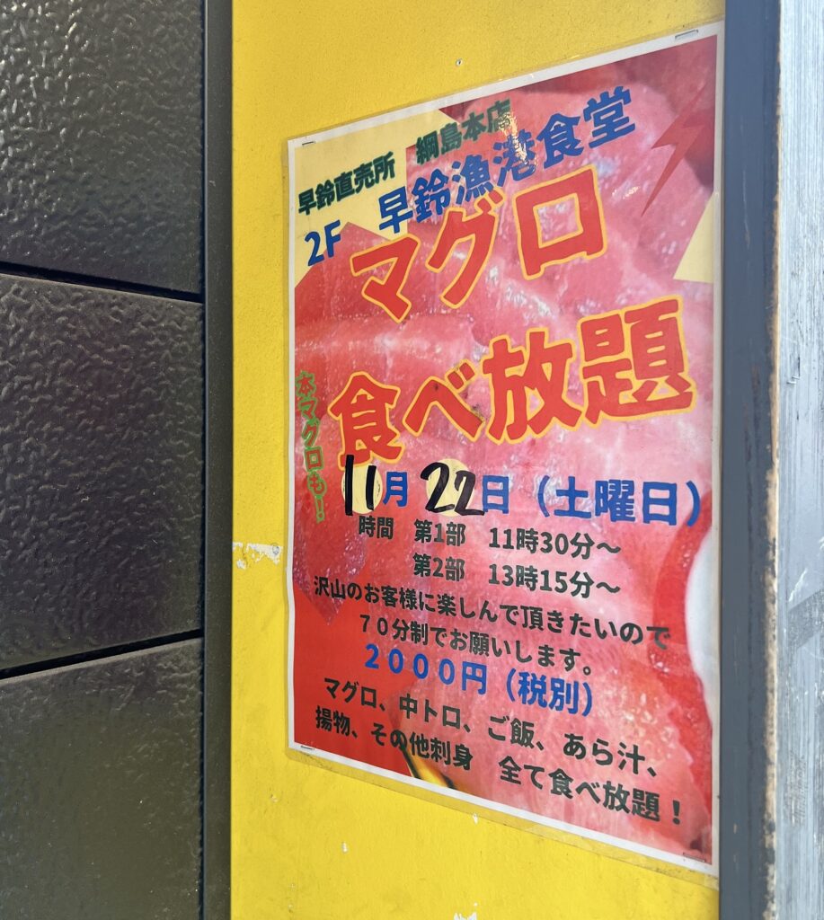 そんな「早鈴直売所」で開催されている人気イベントのマグロ食べ放題」が、今月も開催されますよ。