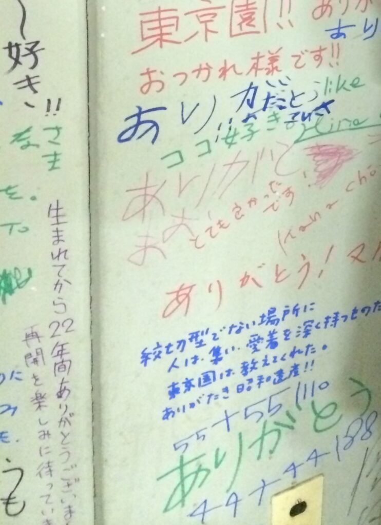 思わず昔の写真を漁っていたら、最後に壁に書かれたメッセージの写真があったので載せておきますね。